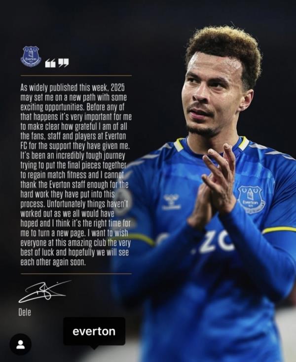 12月20日訊 阿里在自己的instagram上發(fā)文告別了埃弗頓。